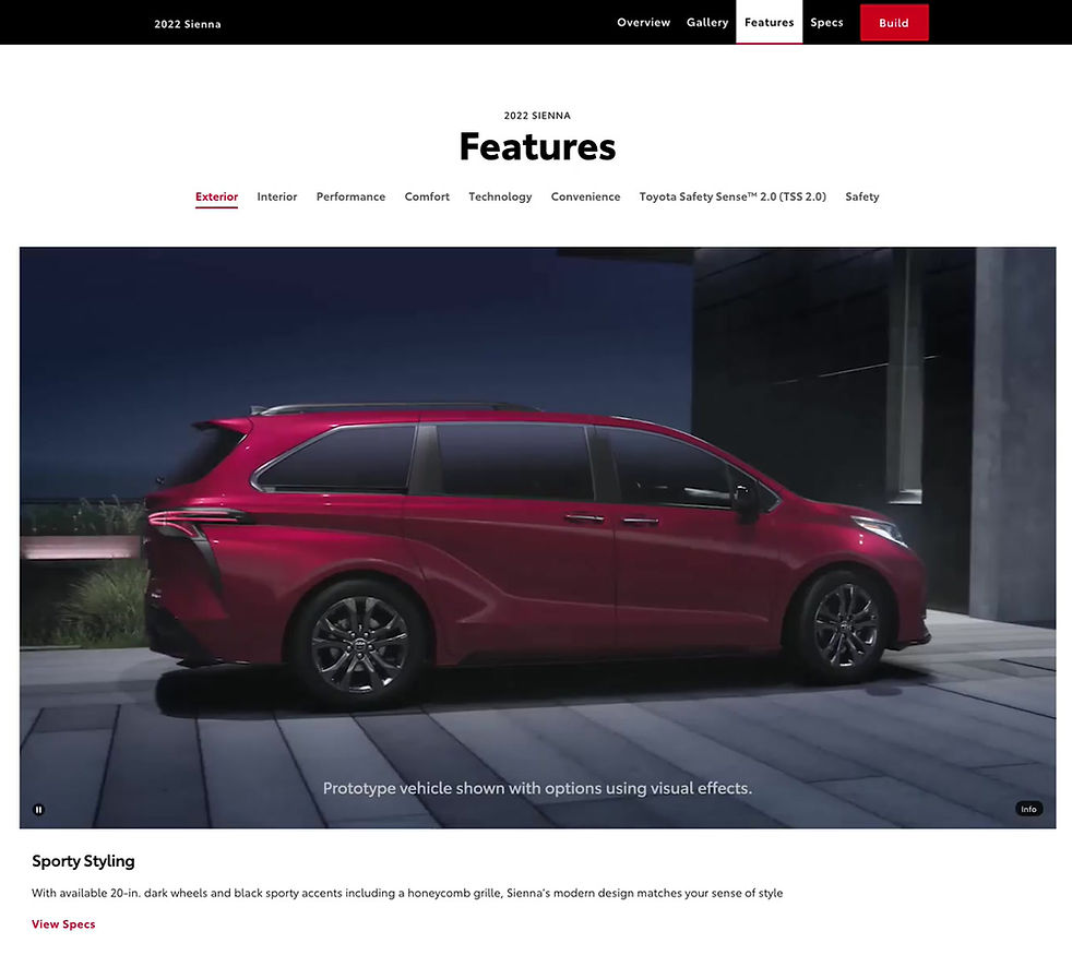 In my previous experience working at Saatchi & Saatchi on the all-new 2021 Toyota Sienna reveal and launch campaign I had to concept and execute deliverables for all digital touch points. With the challenges of not being able to traditionally photograph the vehicle and talent we had to pivot to CGI. Having the human element was crucial to our story so I worked with a vendor to find stock photos to incorporate them into our CGI environments. I created both still and motion content for digital and social. Leading to a total 90,817 units sold in the United States, that’s an increase from both previous years of 42,885 units in 2020 and 73,585 units in 2019.